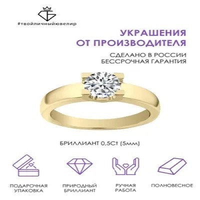 первая страница > Ювелирные изделия > Кольцо золотое с бриллиантом помолвочное женское 585 пробы ТВОЙЛИЧНЫЙЮВЕЛИР